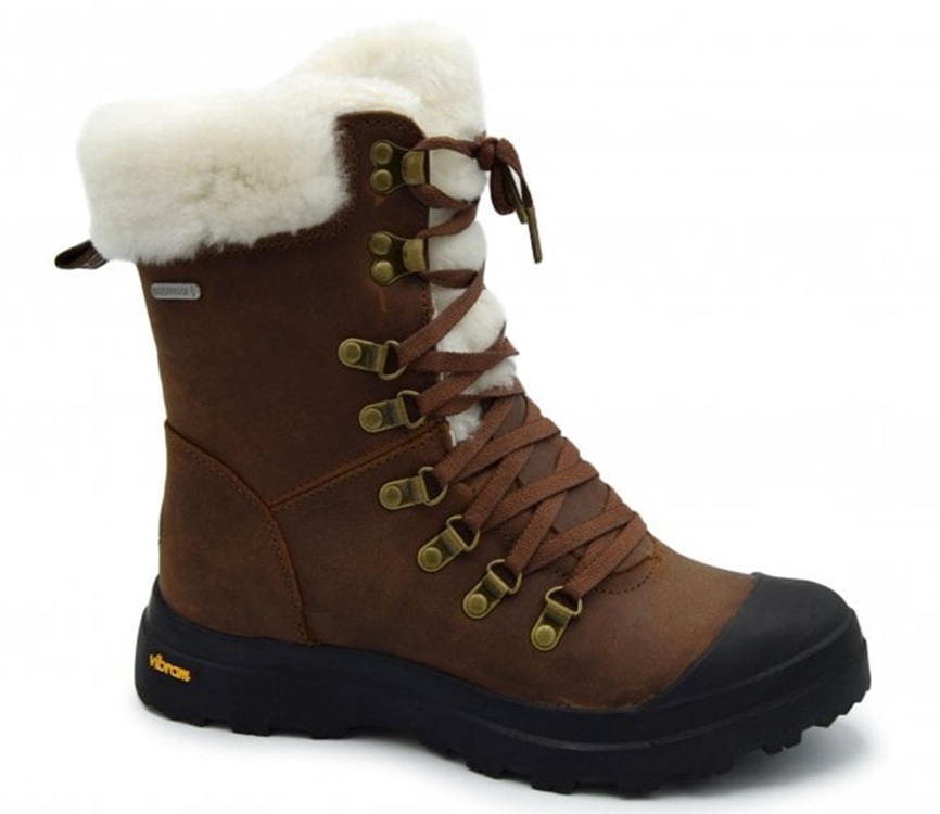 The Emu Buller is a ladies winter boot with waterproofed nubuck leather uppers. The boot has a secure lace-up fastening, with an extra pair of laces included in the box. Buller features an Australian Sheepskin lining for a warm and cozy feel, as well as a removable sheepskin-topped footbed. The Vibram-branded sole unit is made with durable, high-quality rubber with a minimum of 30% recycled materials.