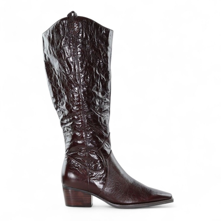 Embrace your inner cowgirl with Giddy Up Gal, a boot that exudes major Western vibes! Crafted from statement metallic and crinkle oil leather, it features a full side zipper adorned with our delightful angel touch lining. The pointed toe and stylish Western detailing on the upper perfectly complement the mid-height leather stacked heel.