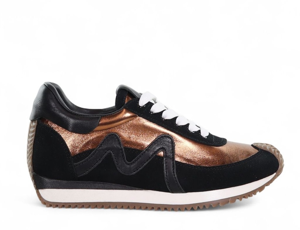 Marvel at these low-top sneakers, expertly crafted from luxurious suede and accented with fine leather trims, featuring a distinct "M" elegantly embellished along the side panels. The layered contrast rubber sole wraps around the front, creating a contemporary and dynamic appearance. Ideal for those who appreciate sporty yet chic styling with a touch of femininity, these sneakers are renowned for their effortless wearability, making them an exceptional choice for busy, on-the-go days.