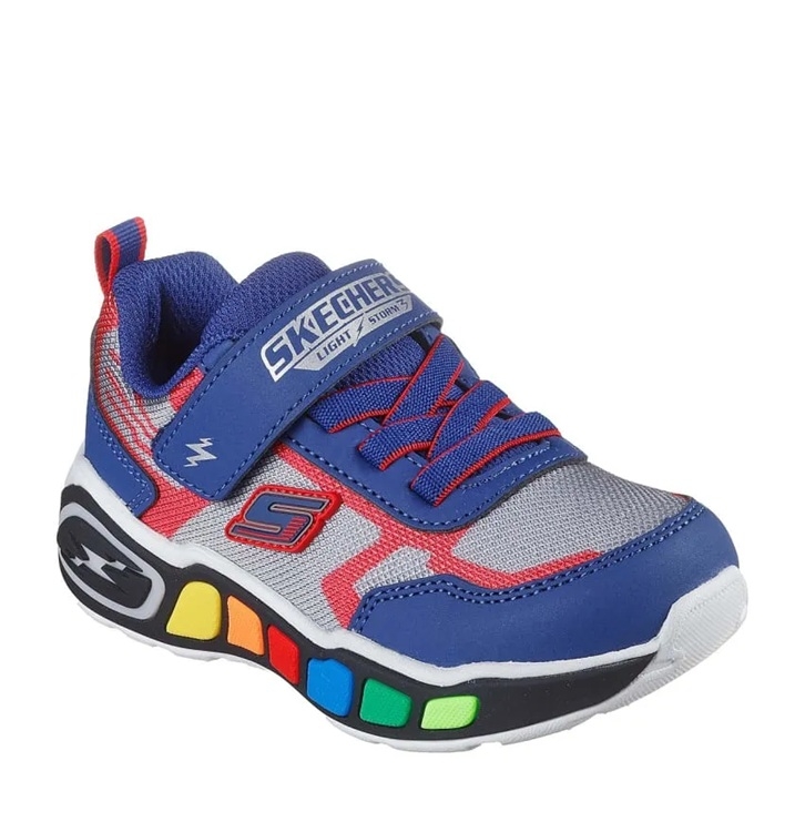 Be the fun in colorful light-up style wearing Skechers Play Scene - Storm Brights. This sporty light-up design features a mesh and synthetic upper with stretch laces, adjustable instep strap, cushioned comfort insole, and a multi-colored light-up midsole tech piece.